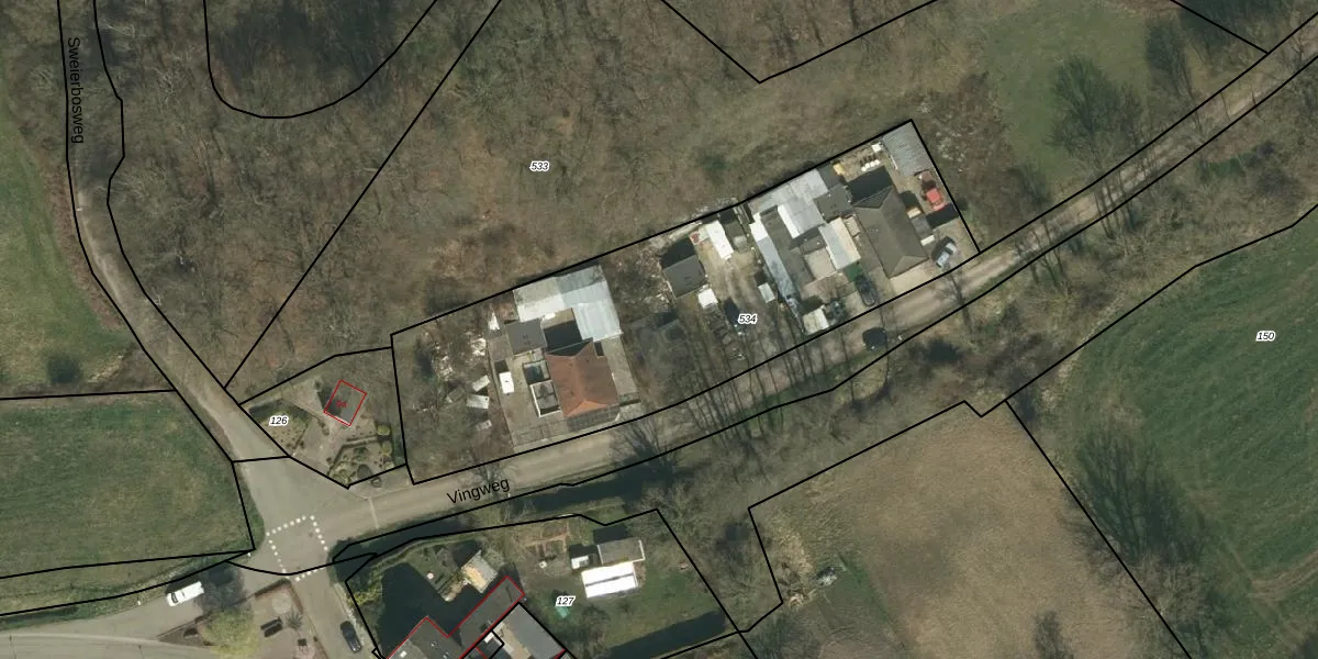 Vingweg 5 is gelegen op kadastraal perceel SPV00M534. Deze kadastrale aanduiding is uniek en wordt gebruikt door het Kadaster om eigendomsrechten en andere zakelijke rechten vast te leggen. Het perceel maakt onderdeel uit van de kadastrale gemeente Simpelveld.