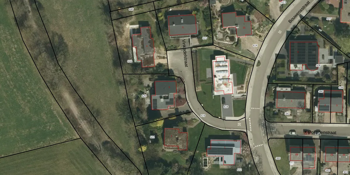 Vinkedelstraat 3 is gelegen op kadastraal perceel SPV00E620. Deze kadastrale aanduiding is uniek en wordt gebruikt door het Kadaster om eigendomsrechten en andere zakelijke rechten vast te leggen. Het perceel maakt onderdeel uit van de kadastrale gemeente Simpelveld.