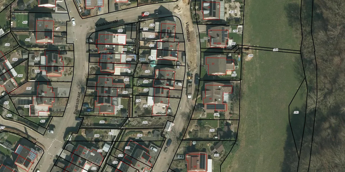 Het perceel waarop Vliexstraat 39 staat heeft een oppervlakte van 148 m². Dit is een middelgroot perceel. De perceeloppervlakte wordt geregistreerd door het Kadaster. Gedetailleerde informatie over de maten van dit perceel kunt u vinden in het rapport Kadastrale kaart met maatvoering van Vliexstraat 39.