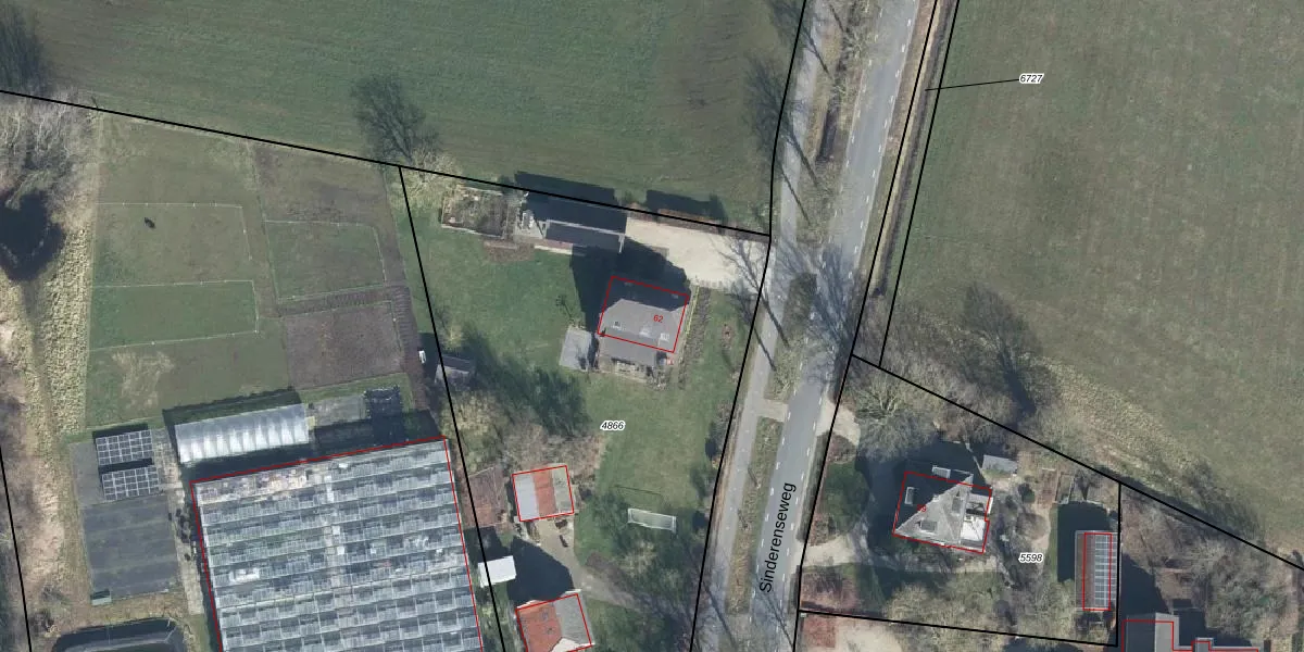 Sinderenseweg 62 is gelegen op kadastraal perceel VSV00D4866. Deze kadastrale aanduiding is uniek en wordt gebruikt door het Kadaster om eigendomsrechten en andere zakelijke rechten vast te leggen. Het perceel maakt onderdeel uit van de kadastrale gemeente Varsseveld.