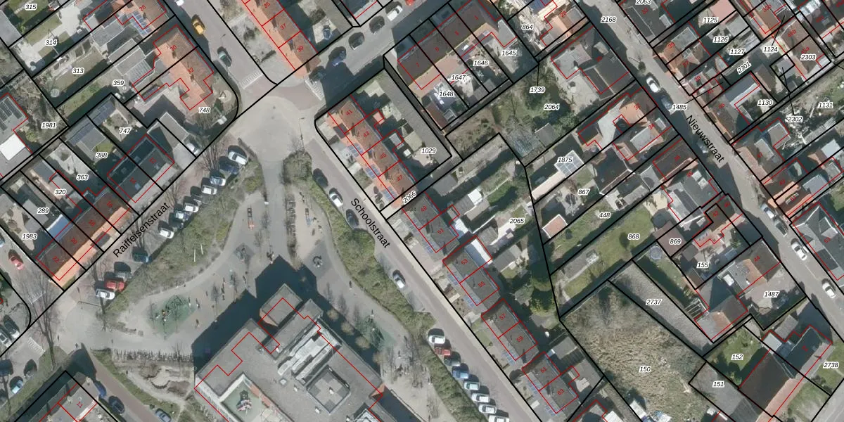 Het perceel waarop Schoolstraat 49 staat heeft een oppervlakte van 1550 m². Dit is een zeer groot perceel. De perceeloppervlakte wordt geregistreerd door het Kadaster. Gedetailleerde informatie over de maten van dit perceel kunt u vinden in het rapport Kadastrale kaart met maatvoering van Schoolstraat 49.