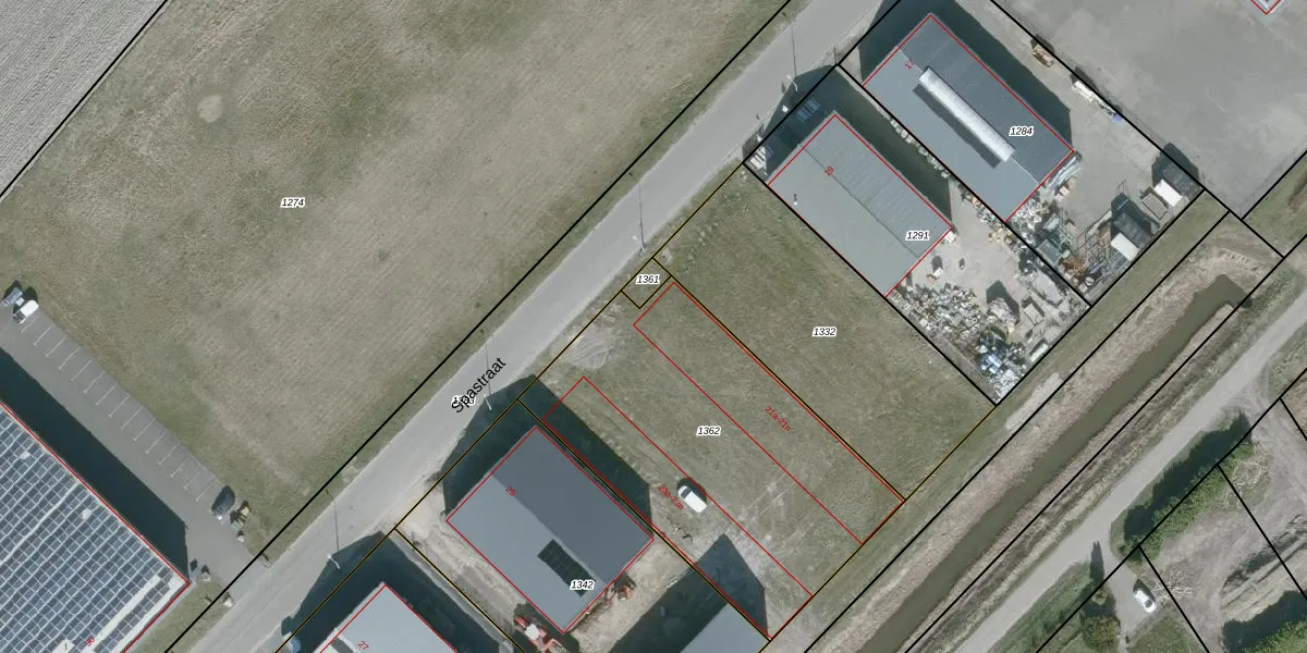 Het perceel waarop Spastraat 21-a staat heeft een oppervlakte van 1587 m². Dit is een zeer groot perceel. De perceeloppervlakte wordt geregistreerd door het Kadaster. Gedetailleerde informatie over de maten van dit perceel kunt u vinden in het rapport Kadastrale kaart met maatvoering van Spastraat 21-a.
