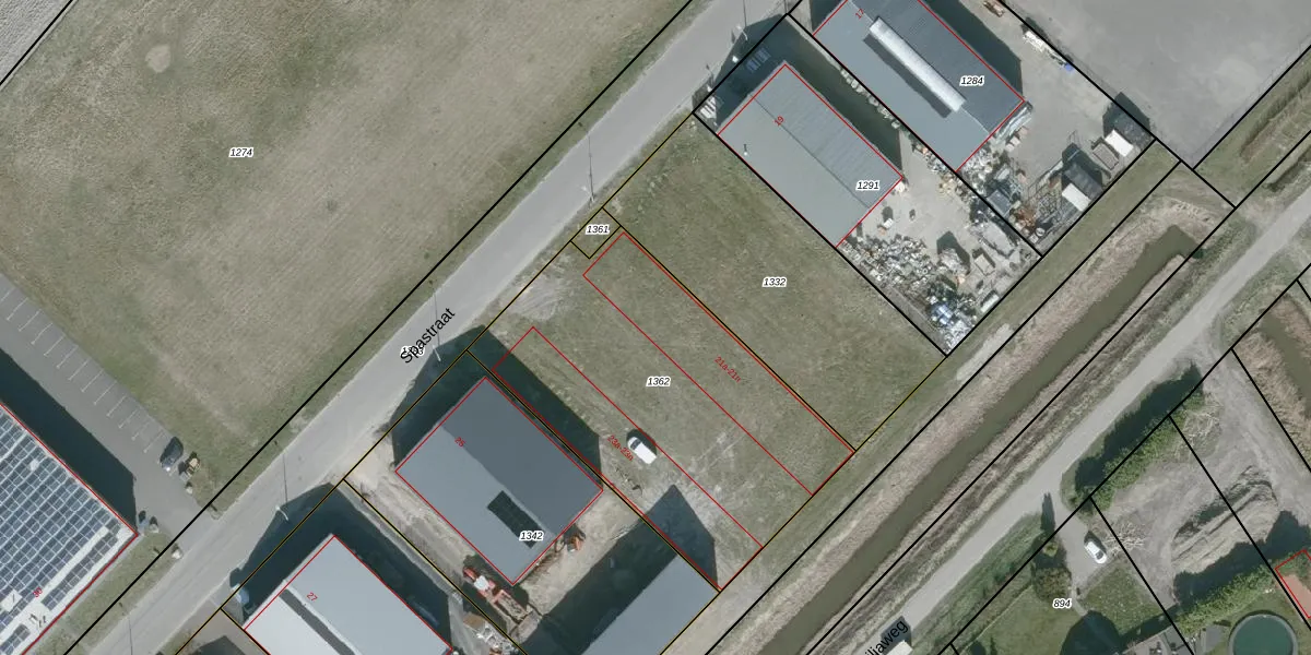 Het perceel waarop Spastraat 21-e staat heeft een oppervlakte van 1587 m². Dit is een zeer groot perceel. De perceeloppervlakte wordt geregistreerd door het Kadaster. Gedetailleerde informatie over de maten van dit perceel kunt u vinden in het rapport Kadastrale kaart met maatvoering van Spastraat 21-e.