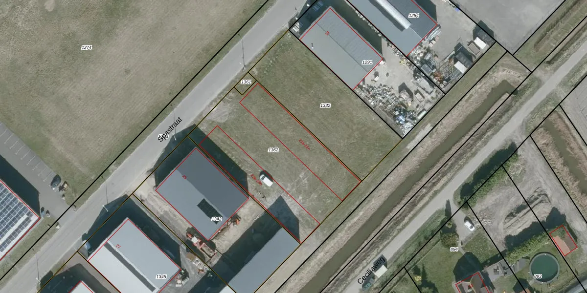 Het perceel waarop Spastraat 21-h staat heeft een oppervlakte van 1587 m². Dit is een zeer groot perceel. De perceeloppervlakte wordt geregistreerd door het Kadaster. Gedetailleerde informatie over de maten van dit perceel kunt u vinden in het rapport Kadastrale kaart met maatvoering van Spastraat 21-h.