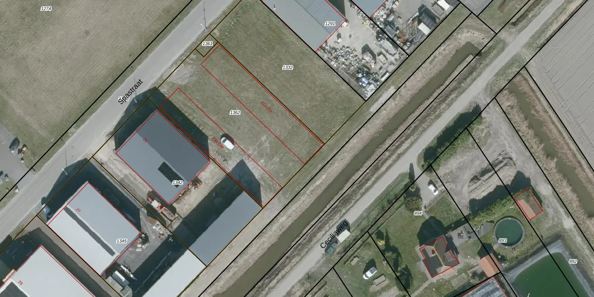 Het perceel waarop Spastraat 21-m staat heeft een oppervlakte van 1587 m². Dit is een zeer groot perceel. De perceeloppervlakte wordt geregistreerd door het Kadaster. Gedetailleerde informatie over de maten van dit perceel kunt u vinden in het rapport Kadastrale kaart met maatvoering van Spastraat 21-m.