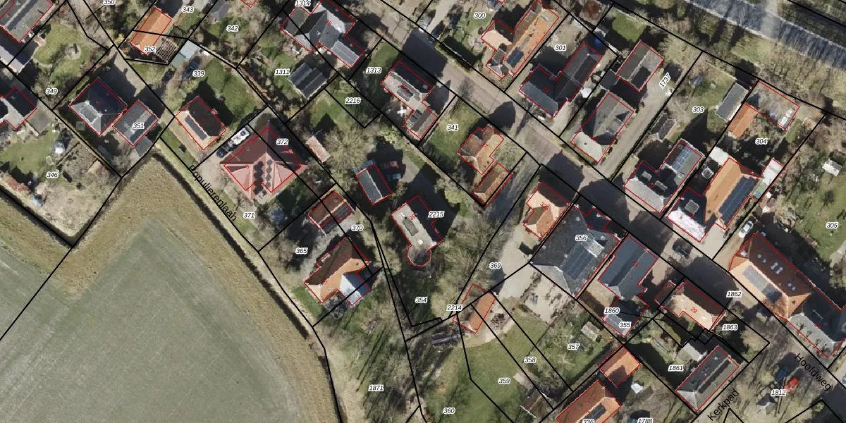 Het perceel waarop Hoofdweg 35 staat heeft een oppervlakte van 1280 m². Dit is een zeer groot perceel. De perceeloppervlakte wordt geregistreerd door het Kadaster. Gedetailleerde informatie over de maten van dit perceel kunt u vinden in het rapport Kadastrale kaart met maatvoering van Hoofdweg 35.