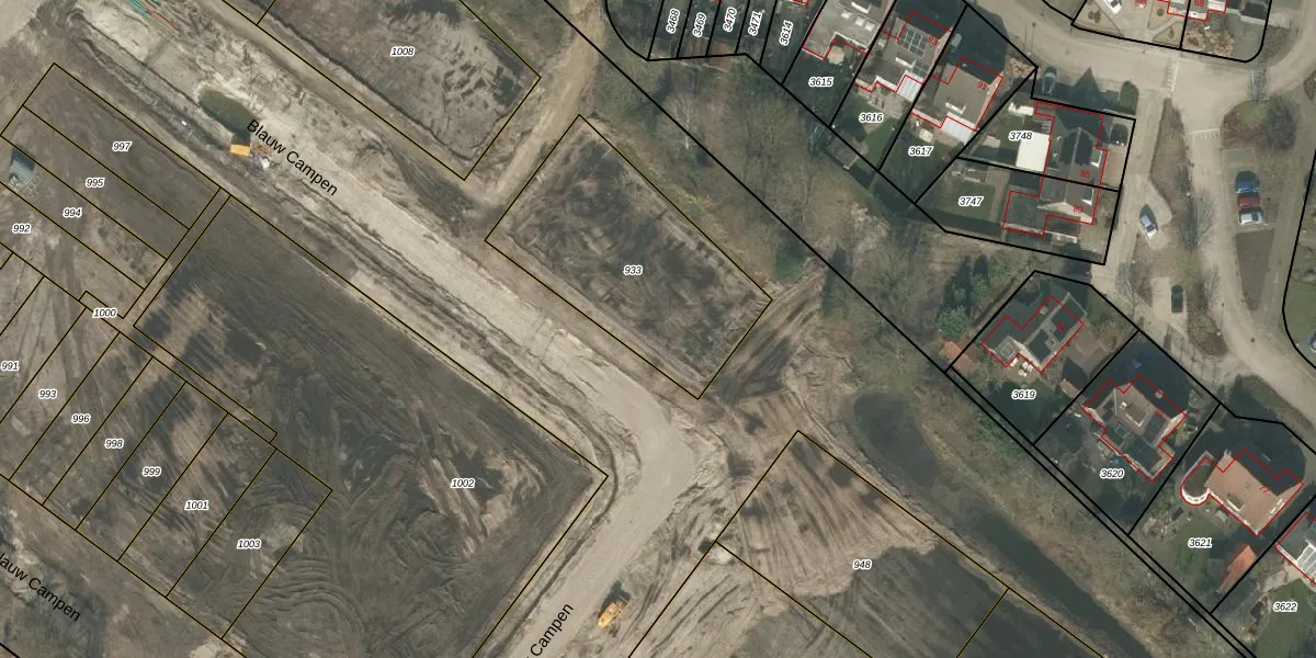 Blauw Campen 42 is gelegen op kadastraal perceel OLO00M933. Deze kadastrale aanduiding is uniek en wordt gebruikt door het Kadaster om eigendomsrechten en andere zakelijke rechten vast te leggen. Het perceel maakt onderdeel uit van de kadastrale gemeente Oploo.