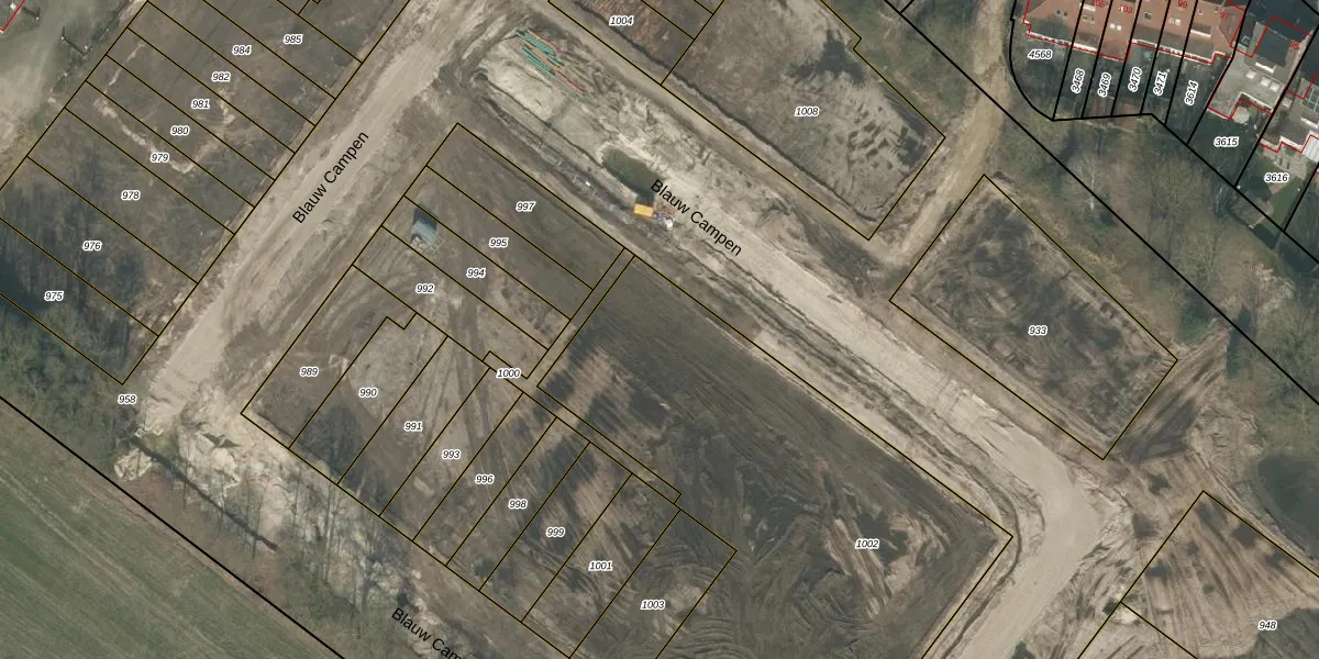 Blauw Campen 45 is gelegen op kadastraal perceel OLO00M1002. Deze kadastrale aanduiding is uniek en wordt gebruikt door het Kadaster om eigendomsrechten en andere zakelijke rechten vast te leggen. Het perceel maakt onderdeel uit van de kadastrale gemeente Oploo.