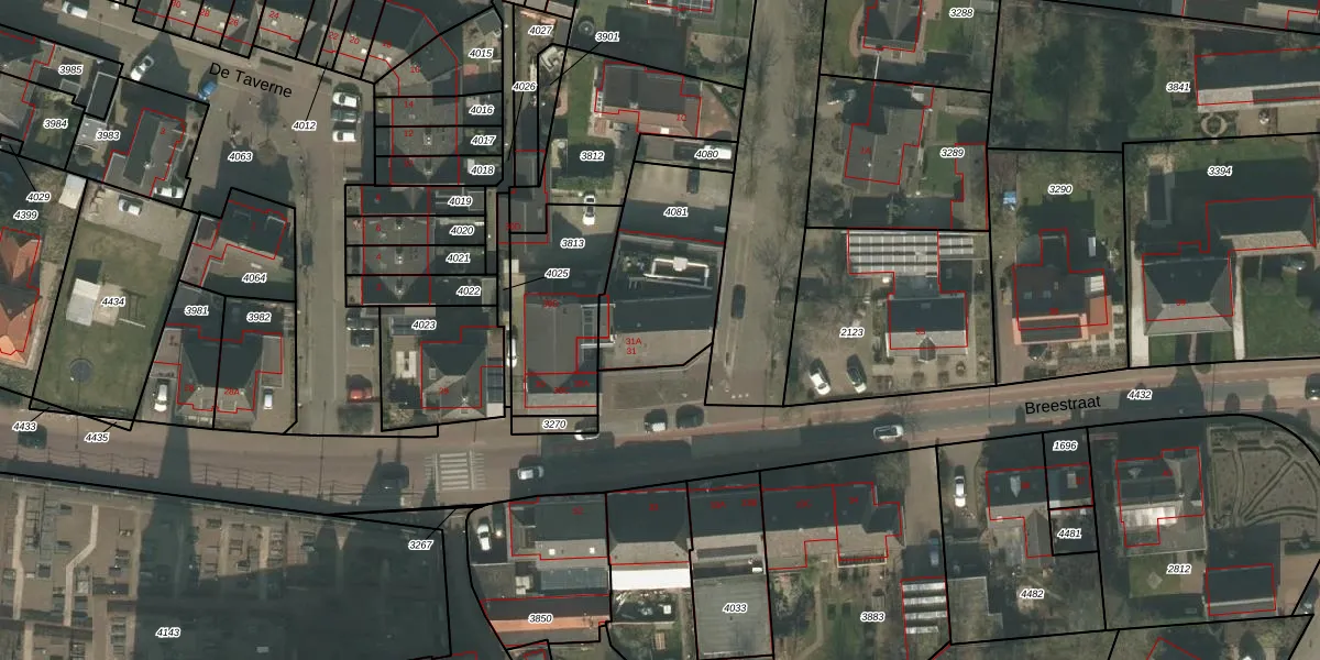 Breestraat 31-A is gelegen op kadastraal perceel OLO00B4081. Deze kadastrale aanduiding is uniek en wordt gebruikt door het Kadaster om eigendomsrechten en andere zakelijke rechten vast te leggen. Het perceel maakt onderdeel uit van de kadastrale gemeente Oploo.