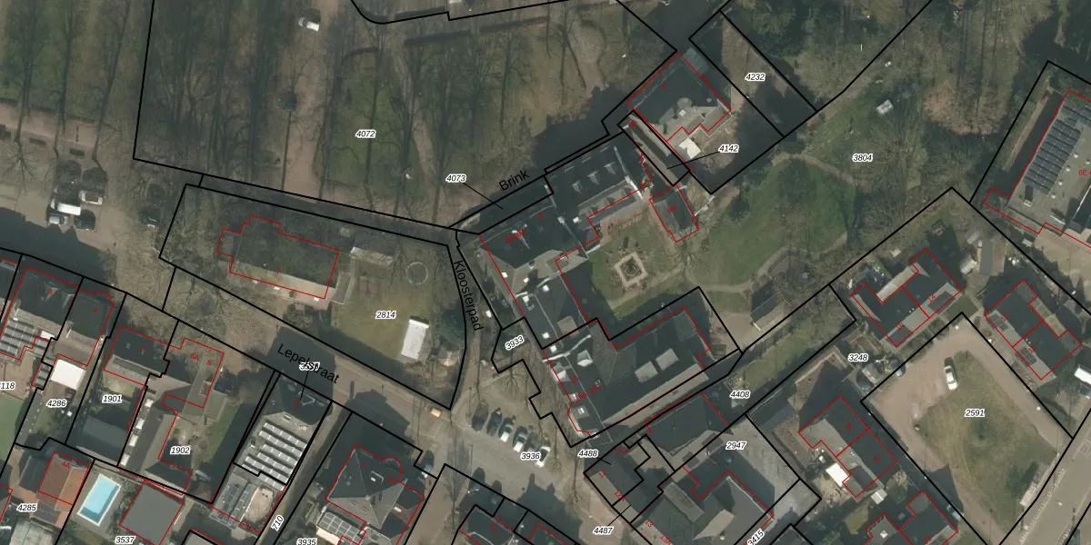 Het perceel waarop Brink 8-E staat heeft een oppervlakte van 4681 m². Dit is een zeer groot perceel. De perceeloppervlakte wordt geregistreerd door het Kadaster. Gedetailleerde informatie over de maten van dit perceel kunt u vinden in het rapport Kadastrale kaart met maatvoering van Brink 8-E.