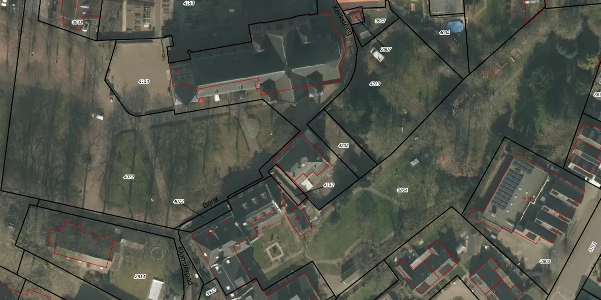 Het perceel waarop Brink 9 staat heeft een oppervlakte van 2578 m². Dit is een zeer groot perceel. De perceeloppervlakte wordt geregistreerd door het Kadaster. Gedetailleerde informatie over de maten van dit perceel kunt u vinden in het rapport Kadastrale kaart met maatvoering van Brink 9.