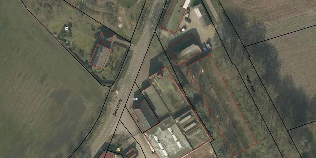 Den Hoek 10 is gelegen op kadastraal perceel OLO00M608. Deze kadastrale aanduiding is uniek en wordt gebruikt door het Kadaster om eigendomsrechten en andere zakelijke rechten vast te leggen. Het perceel maakt onderdeel uit van de kadastrale gemeente Oploo.