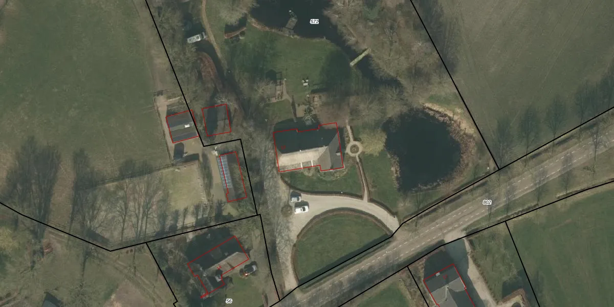 Het perceel waarop Den Hoek 12 staat heeft een oppervlakte van 1,1 ha. Dit is een zeer groot perceel. De perceeloppervlakte wordt geregistreerd door het Kadaster. Gedetailleerde informatie over de maten van dit perceel kunt u vinden in het rapport Kadastrale kaart met maatvoering van Den Hoek 12.