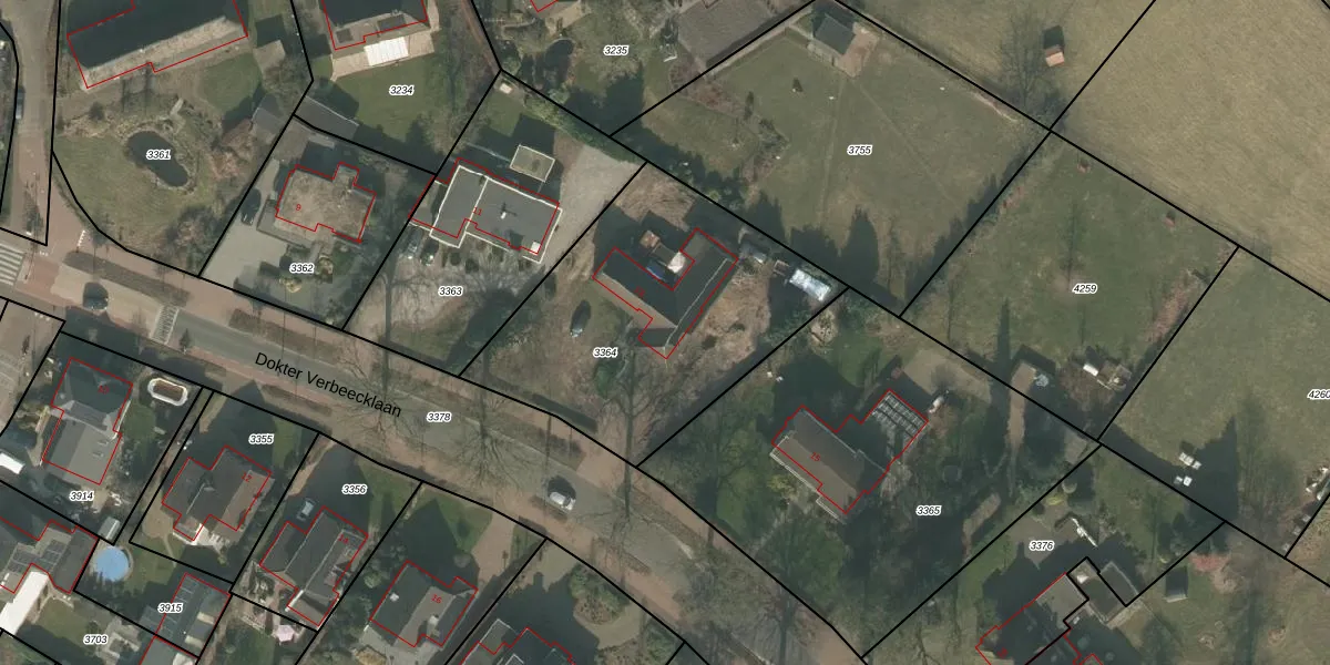 Dokter Verbeecklaan 13 is gelegen op kadastraal perceel OLO00B3364. Deze kadastrale aanduiding is uniek en wordt gebruikt door het Kadaster om eigendomsrechten en andere zakelijke rechten vast te leggen. Het perceel maakt onderdeel uit van de kadastrale gemeente Oploo.