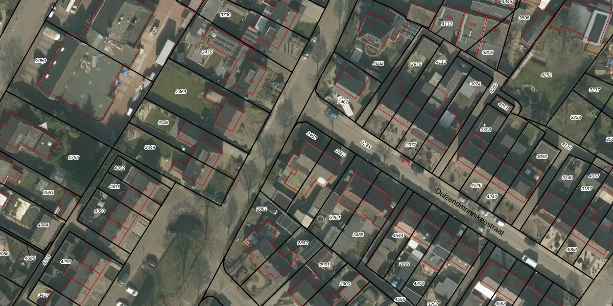 Duizendmonnikenstraat 2 is gelegen op kadastraal perceel OLO00B2462. Deze kadastrale aanduiding is uniek en wordt gebruikt door het Kadaster om eigendomsrechten en andere zakelijke rechten vast te leggen. Het perceel maakt onderdeel uit van de kadastrale gemeente Oploo.