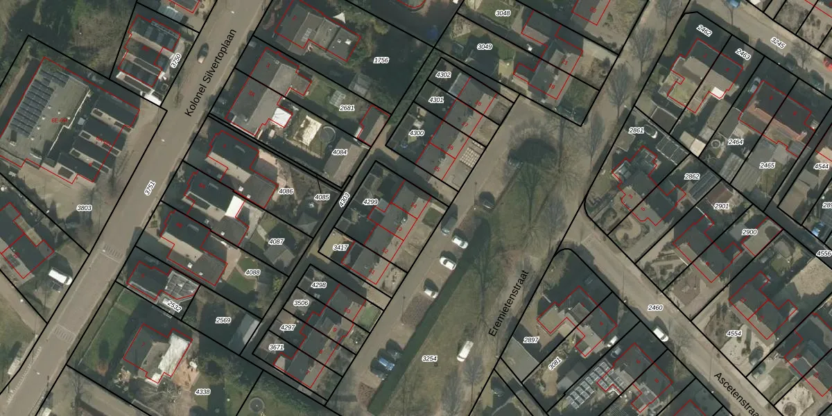 Eremietenstraat 14 is gelegen op kadastraal perceel OLO00B4299. Deze kadastrale aanduiding is uniek en wordt gebruikt door het Kadaster om eigendomsrechten en andere zakelijke rechten vast te leggen. Het perceel maakt onderdeel uit van de kadastrale gemeente Oploo.