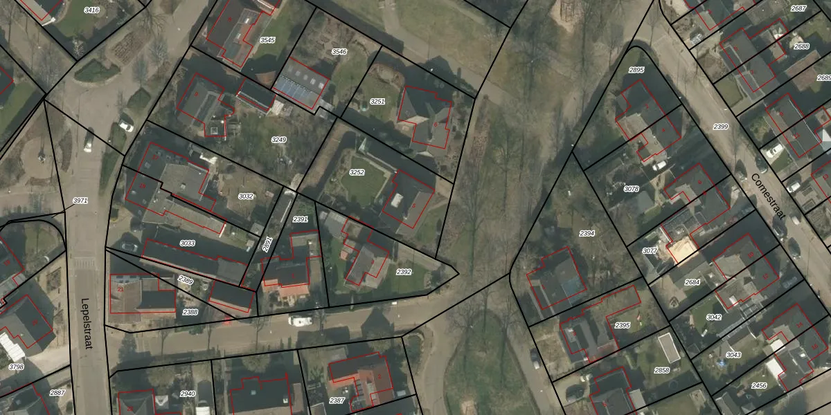 Gebruik de zoekbalk of klik op een perceel voor informatie over de adressen binnen dit perceel.