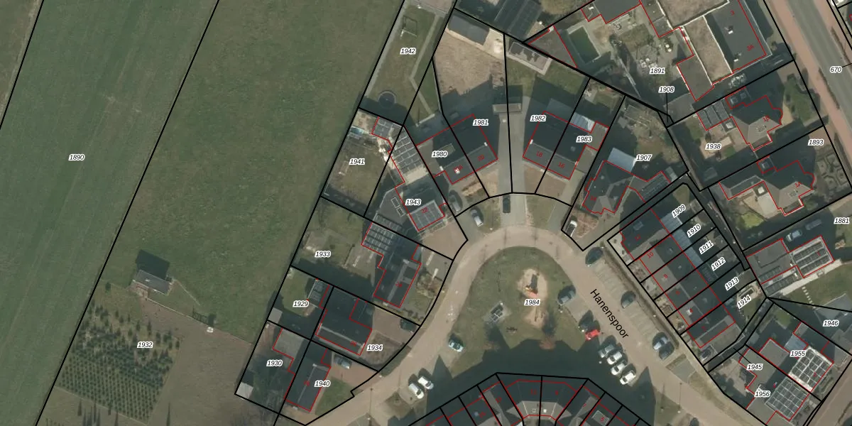 Het perceel waarop Hanenspoor 22 staat heeft een oppervlakte van 355 m². Dit is een groot perceel. De perceeloppervlakte wordt geregistreerd door het Kadaster. Gedetailleerde informatie over de maten van dit perceel kunt u vinden in het rapport Kadastrale kaart met maatvoering van Hanenspoor 22.