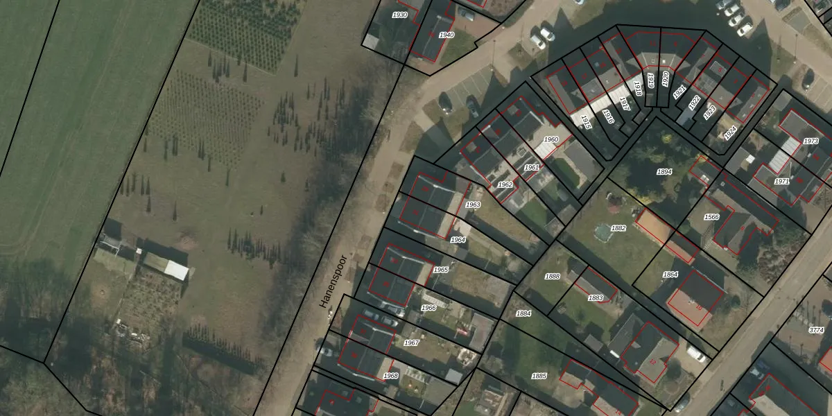 Het perceel waarop Hanenspoor 31 staat heeft een oppervlakte van 303 m². Dit is een groot perceel. De perceeloppervlakte wordt geregistreerd door het Kadaster. Gedetailleerde informatie over de maten van dit perceel kunt u vinden in het rapport Kadastrale kaart met maatvoering van Hanenspoor 31.