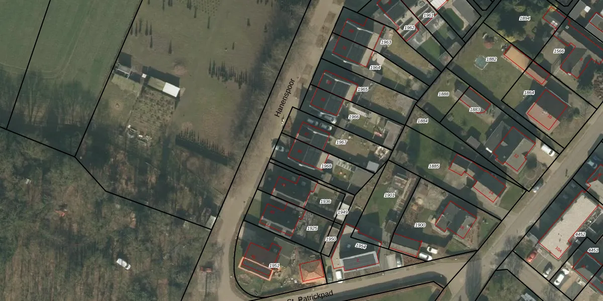 Hanenspoor 39 is gelegen op kadastraal perceel OLO00A1968. Deze kadastrale aanduiding is uniek en wordt gebruikt door het Kadaster om eigendomsrechten en andere zakelijke rechten vast te leggen. Het perceel maakt onderdeel uit van de kadastrale gemeente Oploo.