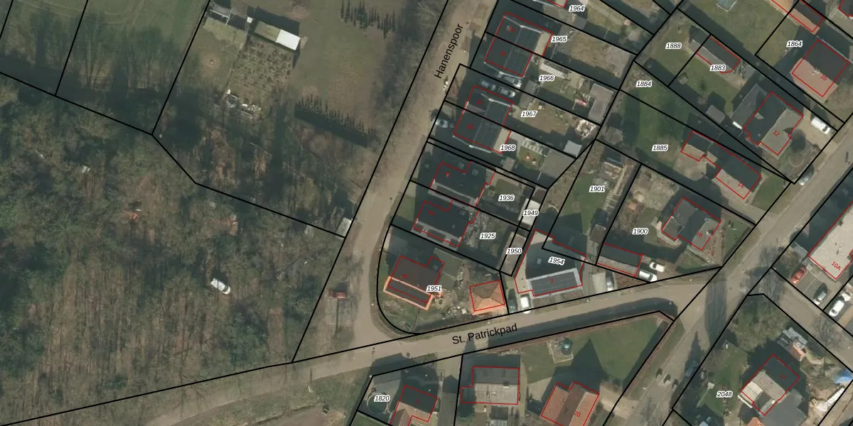 Hanenspoor 43 is gelegen op kadastraal perceel OLO00A1925. Deze kadastrale aanduiding is uniek en wordt gebruikt door het Kadaster om eigendomsrechten en andere zakelijke rechten vast te leggen. Het perceel maakt onderdeel uit van de kadastrale gemeente Oploo.