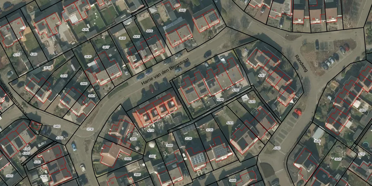 Harrie van den Bergstraat 9 is gelegen op kadastraal perceel OLO00B4280. Deze kadastrale aanduiding is uniek en wordt gebruikt door het Kadaster om eigendomsrechten en andere zakelijke rechten vast te leggen. Het perceel maakt onderdeel uit van de kadastrale gemeente Oploo.
