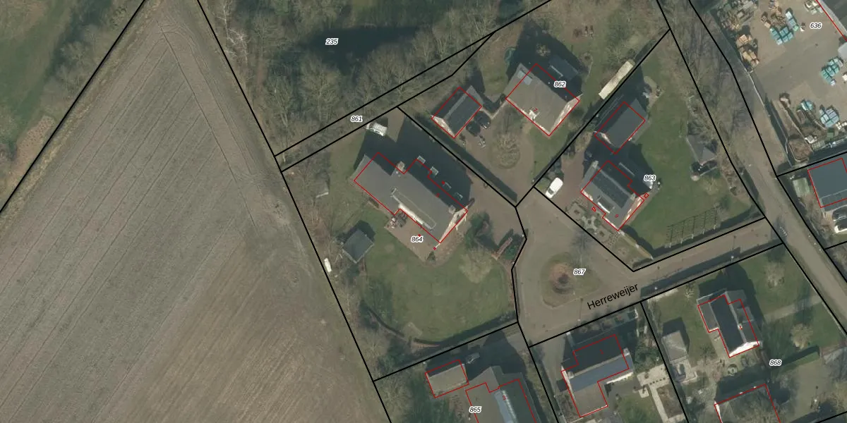 Herreweijer 5 is gelegen op kadastraal perceel OLO00I864. Deze kadastrale aanduiding is uniek en wordt gebruikt door het Kadaster om eigendomsrechten en andere zakelijke rechten vast te leggen. Het perceel maakt onderdeel uit van de kadastrale gemeente Oploo.