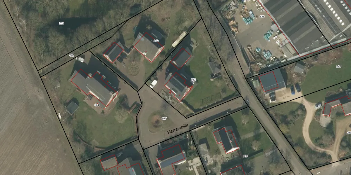 Herreweijer 9 is gelegen op kadastraal perceel OLO00I863. Deze kadastrale aanduiding is uniek en wordt gebruikt door het Kadaster om eigendomsrechten en andere zakelijke rechten vast te leggen. Het perceel maakt onderdeel uit van de kadastrale gemeente Oploo.