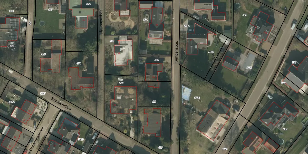 Kempensbos 24 is gelegen op kadastraal perceel OLO00K402. Deze kadastrale aanduiding is uniek en wordt gebruikt door het Kadaster om eigendomsrechten en andere zakelijke rechten vast te leggen. Het perceel maakt onderdeel uit van de kadastrale gemeente Oploo.