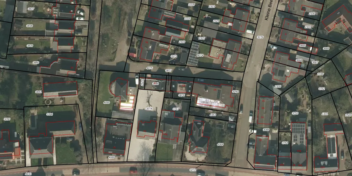 Kleine Beekstraat 1-B is gelegen op kadastraal perceel OLO00B3876. Deze kadastrale aanduiding is uniek en wordt gebruikt door het Kadaster om eigendomsrechten en andere zakelijke rechten vast te leggen. Het perceel maakt onderdeel uit van de kadastrale gemeente Oploo.