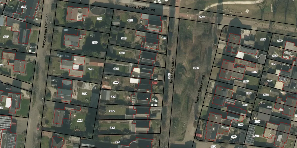 Gebruik de zoekbalk of klik op een perceel voor informatie over de adressen binnen dit perceel.