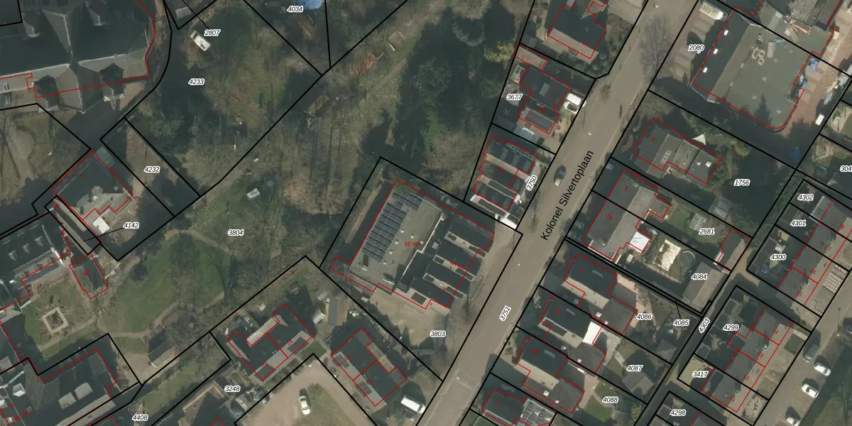 Kolonel Silvertoplaan 6-D is gelegen op kadastraal perceel OLO00B3803. Deze kadastrale aanduiding is uniek en wordt gebruikt door het Kadaster om eigendomsrechten en andere zakelijke rechten vast te leggen. Het perceel maakt onderdeel uit van de kadastrale gemeente Oploo.