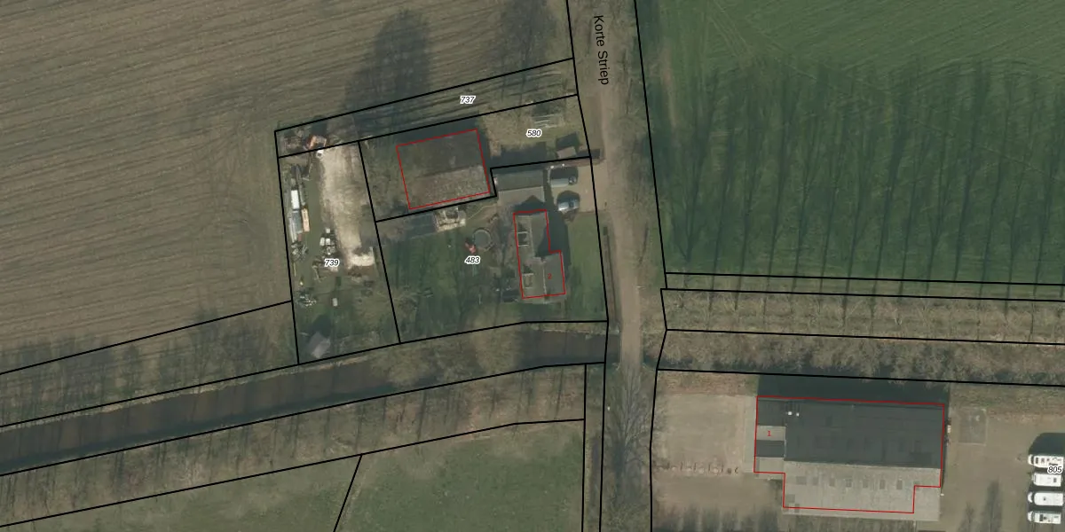 Korte Striep 2 is gelegen op kadastraal perceel OLO00M483. Deze kadastrale aanduiding is uniek en wordt gebruikt door het Kadaster om eigendomsrechten en andere zakelijke rechten vast te leggen. Het perceel maakt onderdeel uit van de kadastrale gemeente Oploo.