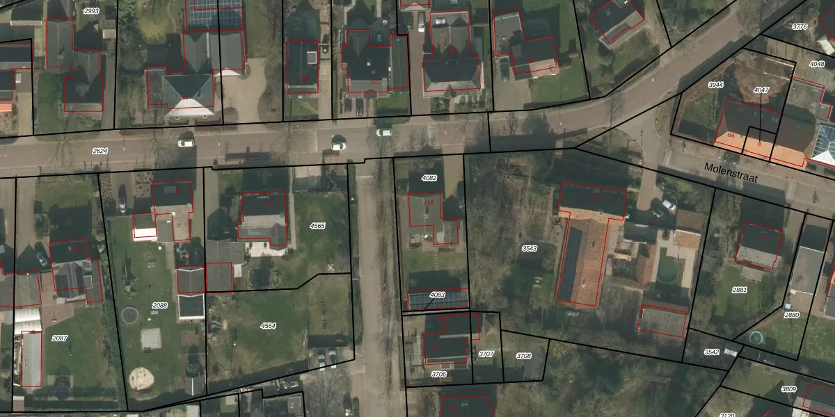 Molenstraat 11-A is gelegen op kadastraal perceel OLO00B4082. Deze kadastrale aanduiding is uniek en wordt gebruikt door het Kadaster om eigendomsrechten en andere zakelijke rechten vast te leggen. Het perceel maakt onderdeel uit van de kadastrale gemeente Oploo.
