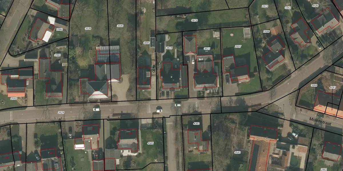 Molenstraat 12 is gelegen op kadastraal perceel OLO00B3814. Deze kadastrale aanduiding is uniek en wordt gebruikt door het Kadaster om eigendomsrechten en andere zakelijke rechten vast te leggen. Het perceel maakt onderdeel uit van de kadastrale gemeente Oploo.