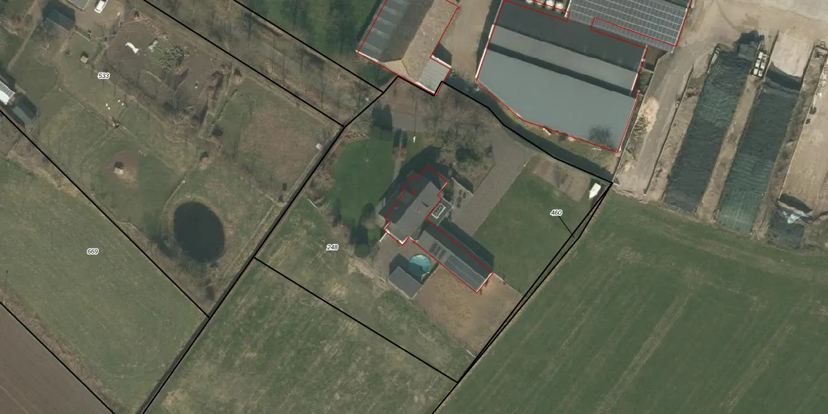 Het adres ligt op het perceel OLO00-K-248, dat zich in de kadastrale gemeente Oploo bevindt. Het perceel is 3475 m² groot. Dat is kleiner dan de gemiddelde perceeloppervlakte in Oploo, dat op 9279,09 m² ligt. Het grootste perceel in de kadastrale gemeente is 5,11 km². Het kleinste perceel heeft een oppervlakte van 0 m². Dit is het enige adres dat aanwezig is op het perceel. In de Basisregistratie Kadaster (BRK) werden de grenzen van het perceel geregistreerd op 07-04-2011.