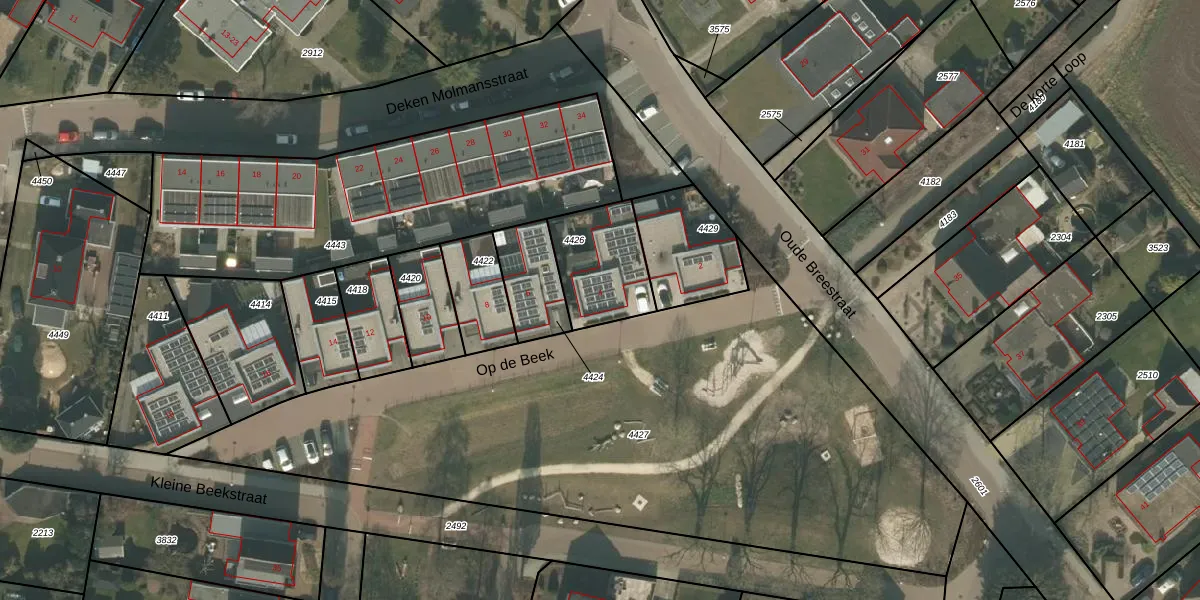Gebruik de zoekbalk of klik op een perceel voor informatie over de adressen binnen dit perceel.