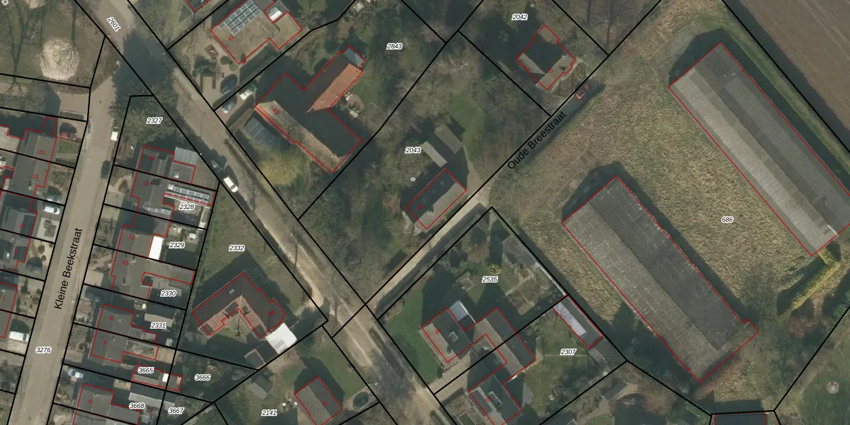 Oude Breestraat 45 is gelegen op kadastraal perceel OLO00B2043. Deze kadastrale aanduiding is uniek en wordt gebruikt door het Kadaster om eigendomsrechten en andere zakelijke rechten vast te leggen. Het perceel maakt onderdeel uit van de kadastrale gemeente Oploo.