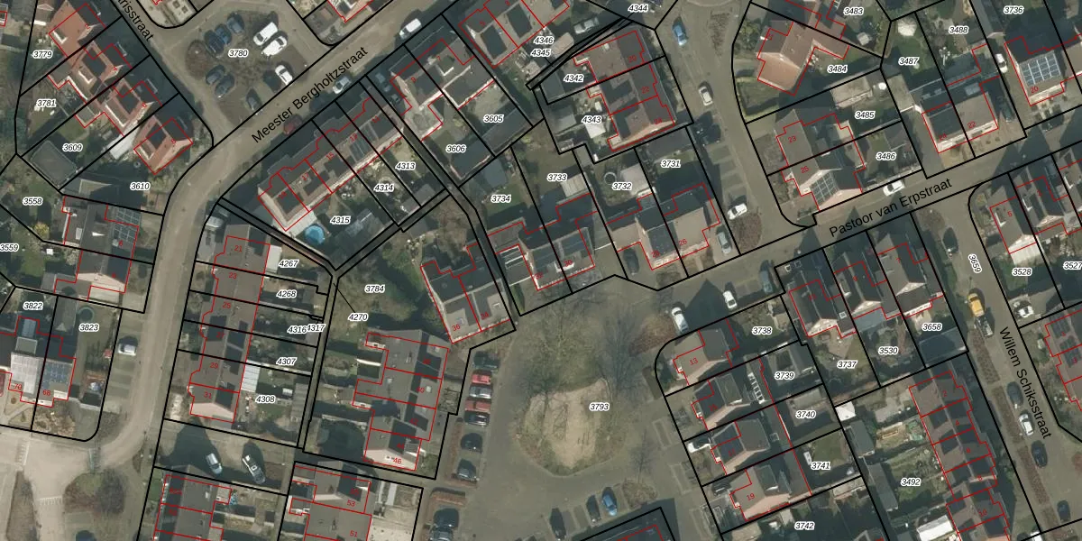 Gebruik de zoekbalk of klik op een perceel voor informatie over de adressen binnen dit perceel.