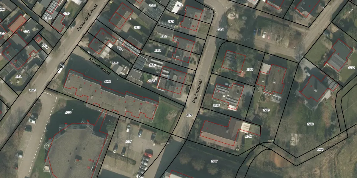 Paulusstraat 3 is gelegen op kadastraal perceel OLO00B2965. Deze kadastrale aanduiding is uniek en wordt gebruikt door het Kadaster om eigendomsrechten en andere zakelijke rechten vast te leggen. Het perceel maakt onderdeel uit van de kadastrale gemeente Oploo.