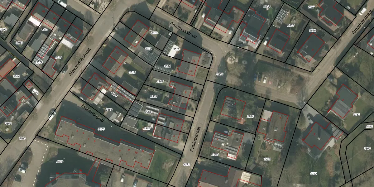 Gebruik de zoekbalk of klik op een perceel voor informatie over de adressen binnen dit perceel.