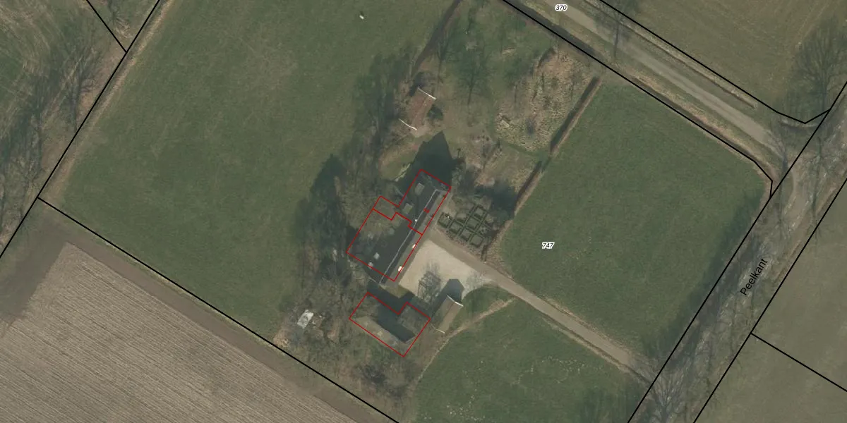 Het perceel waarop Peelkant 64 staat heeft een oppervlakte van 1,4 ha. Dit is een zeer groot perceel. De perceeloppervlakte wordt geregistreerd door het Kadaster. Gedetailleerde informatie over de maten van dit perceel kunt u vinden in het rapport Kadastrale kaart met maatvoering van Peelkant 64.