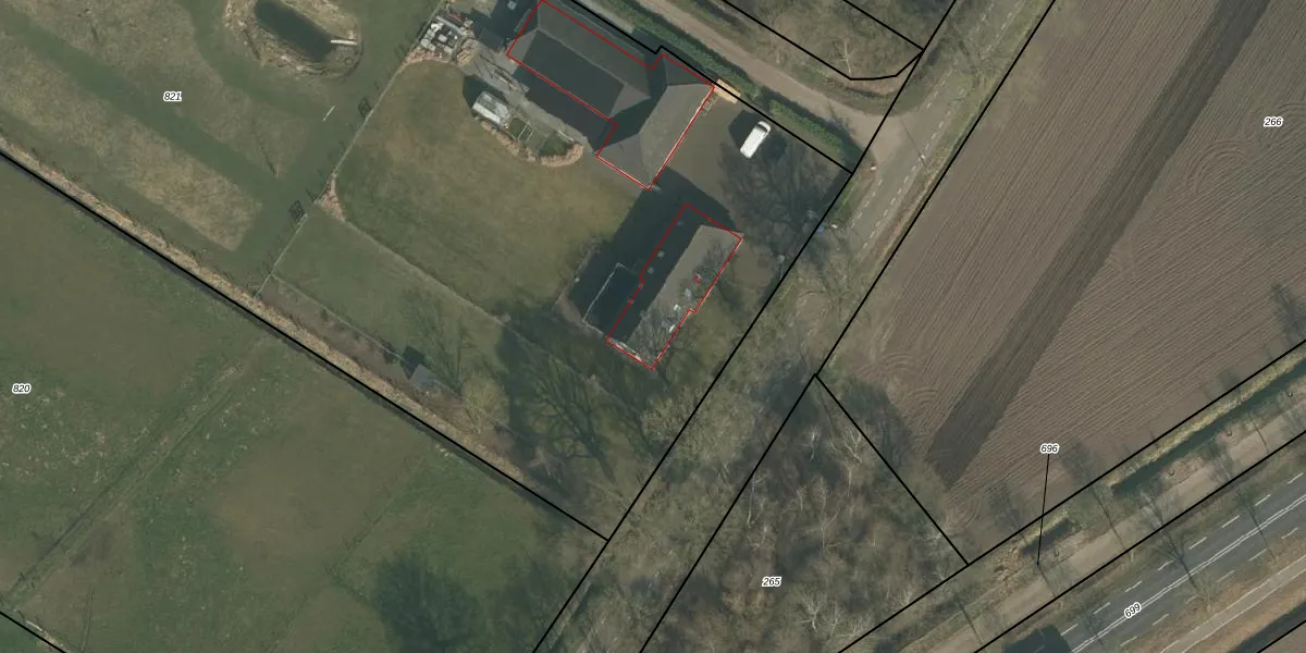 Het adres ligt op het perceel OLO00-I-821, dat zich in de kadastrale gemeente Oploo bevindt. Het perceel is met 1,2 ha relatief groot. Het gemiddelde ligt in de kadastrale gemeente Oploo op 9279,09 m². Het kleinste perceel in de kadastrale gemeente is 0 m² groot. De grootste perceeloppervlakte is 5,11 km². Dit is het enige adres dat aanwezig is op het perceel. De laatste wijziging in het de Basisregistratie Kadaster (BRK) was op 26-06-2007.