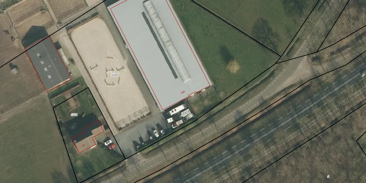 Het perceel waarop Peelkant 76-A staat heeft een oppervlakte van 1,2 ha. Dit is een zeer groot perceel. De perceeloppervlakte wordt geregistreerd door het Kadaster. Gedetailleerde informatie over de maten van dit perceel kunt u vinden in het rapport Kadastrale kaart met maatvoering van Peelkant 76-A.