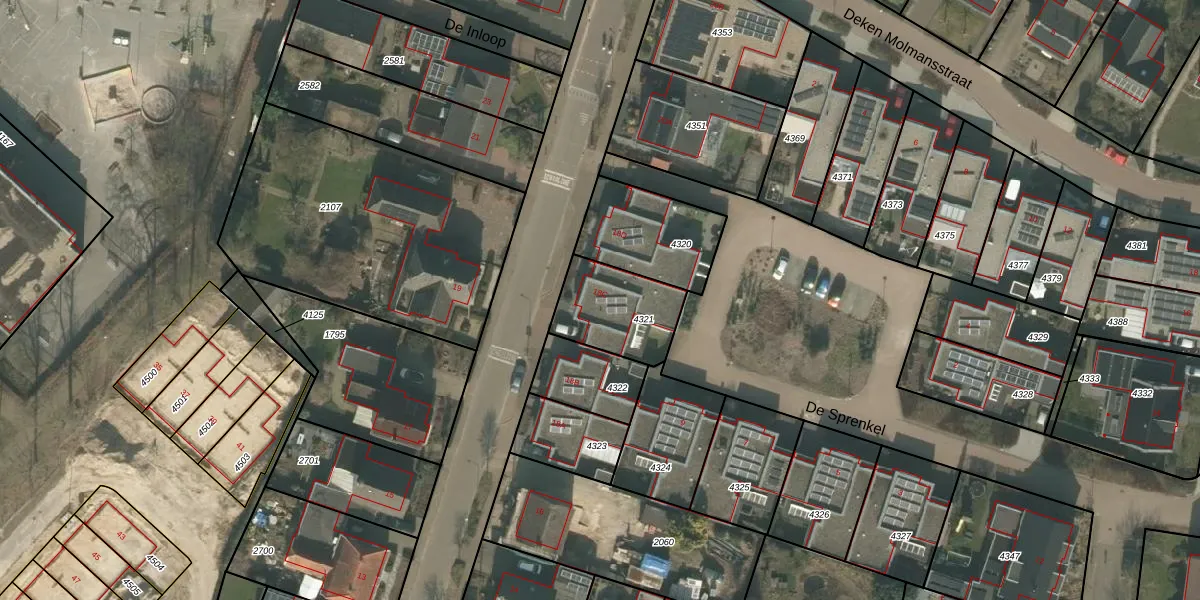 Gebruik de zoekbalk of klik op een perceel voor informatie over de adressen binnen dit perceel.
