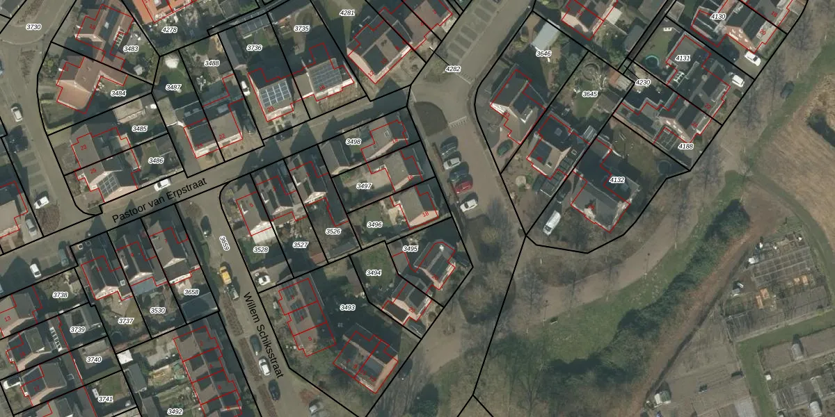 Gebruik de zoekbalk of klik op een perceel voor informatie over de adressen binnen dit perceel.