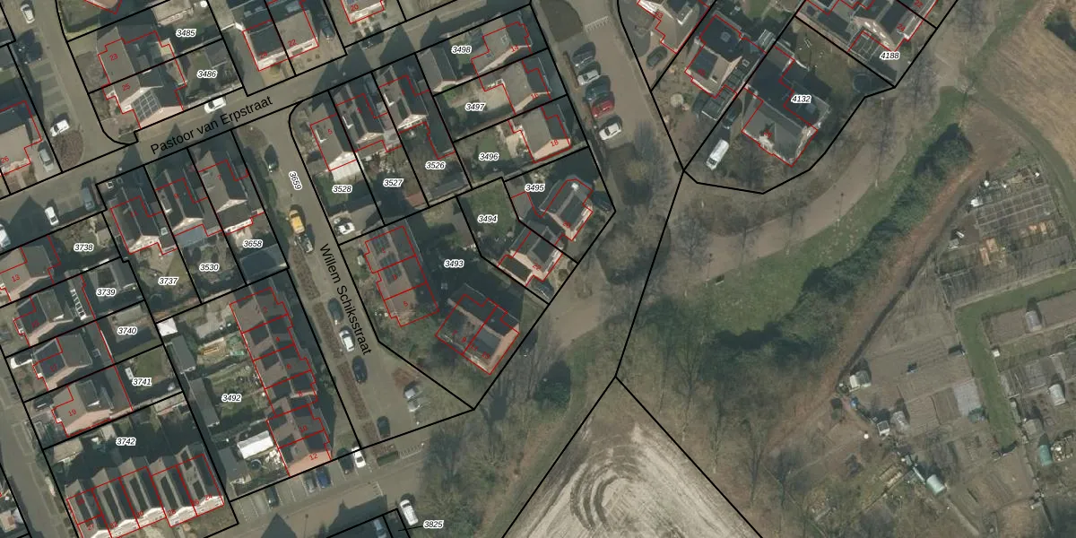 Gebruik de zoekbalk of klik op een perceel voor informatie over de adressen binnen dit perceel.