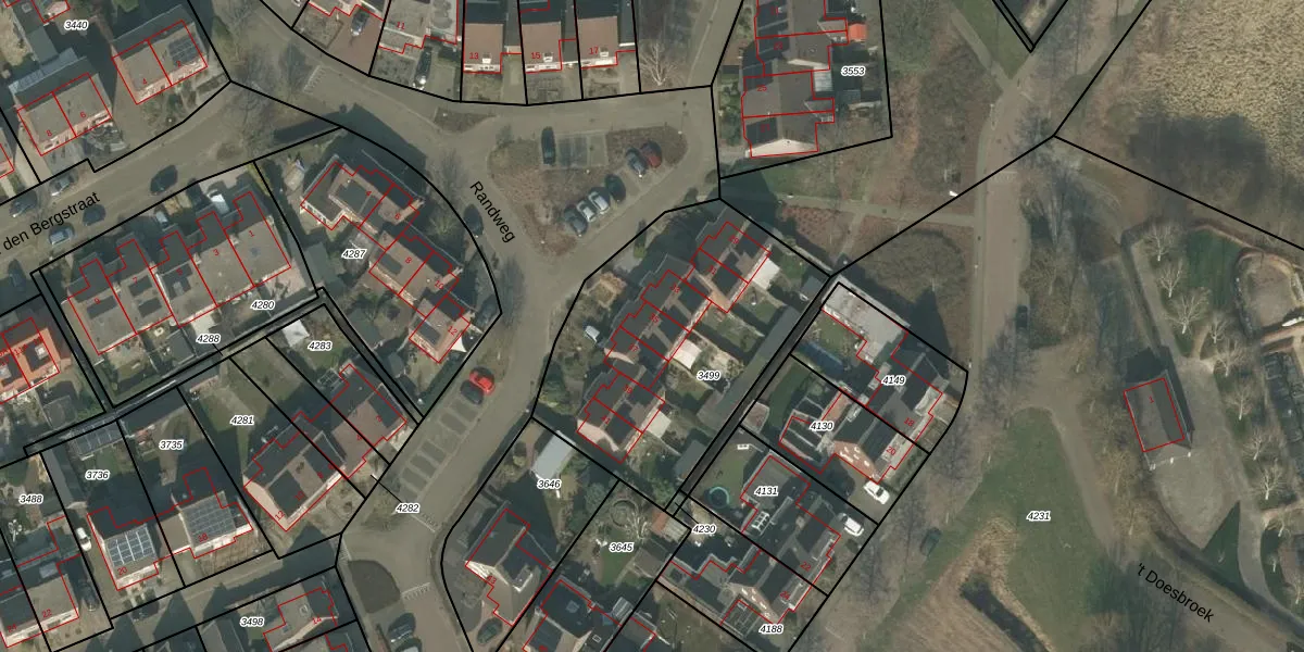 Randweg 35 is gelegen op kadastraal perceel OLO00B3499. Deze kadastrale aanduiding is uniek en wordt gebruikt door het Kadaster om eigendomsrechten en andere zakelijke rechten vast te leggen. Het perceel maakt onderdeel uit van de kadastrale gemeente Oploo.