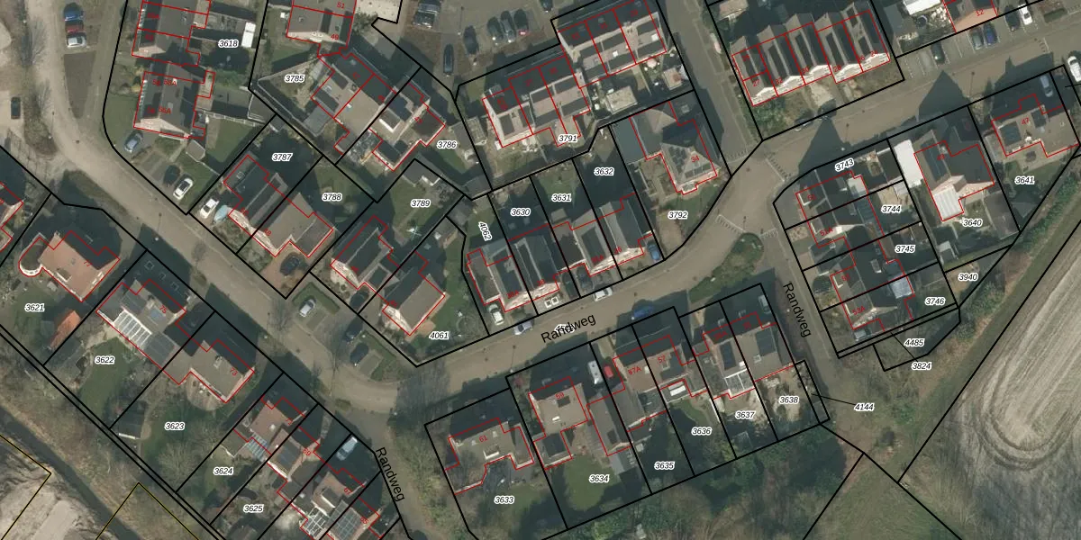 Randweg 38 is gelegen op kadastraal perceel OLO00B3630. Deze kadastrale aanduiding is uniek en wordt gebruikt door het Kadaster om eigendomsrechten en andere zakelijke rechten vast te leggen. Het perceel maakt onderdeel uit van de kadastrale gemeente Oploo.
