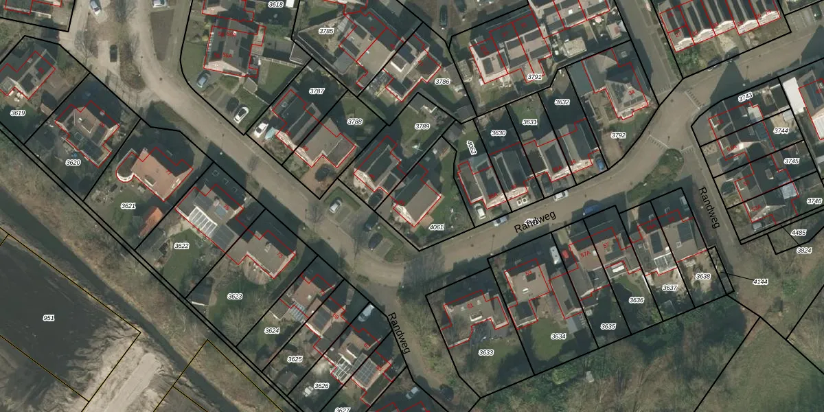 Randweg 44 is gelegen op kadastraal perceel OLO00B4061. Deze kadastrale aanduiding is uniek en wordt gebruikt door het Kadaster om eigendomsrechten en andere zakelijke rechten vast te leggen. Het perceel maakt onderdeel uit van de kadastrale gemeente Oploo.